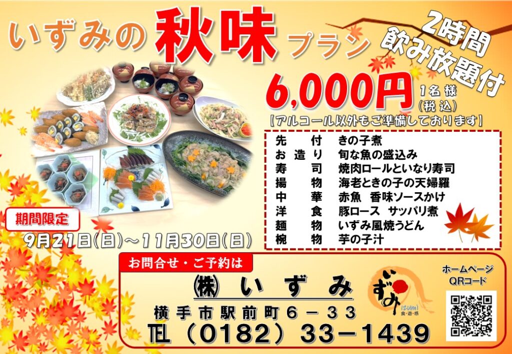 旬の食材盛りだくさん「秋味プラン」のご案内♪