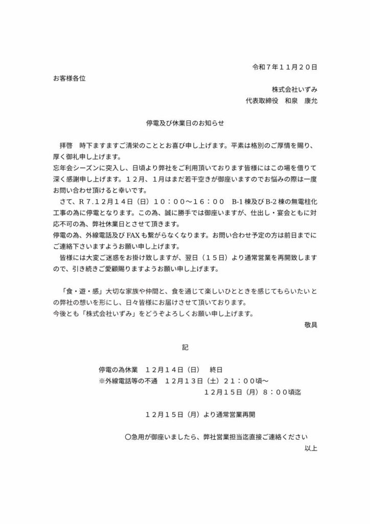 (株)いずみ特製二段重 予約開始のお知らせ♪